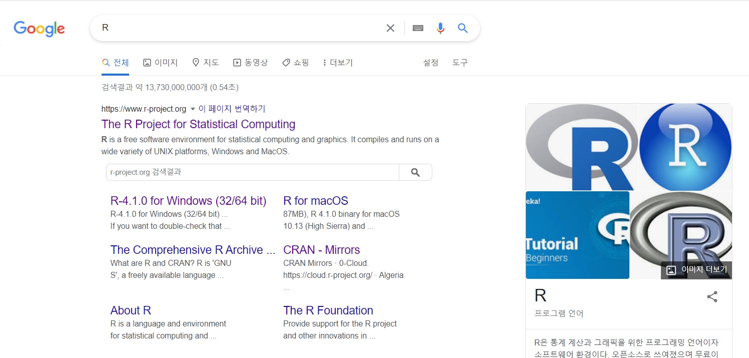 구글에서 R을 검색하면