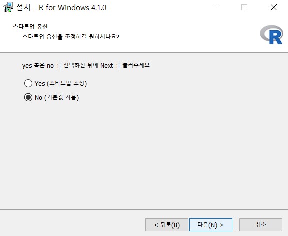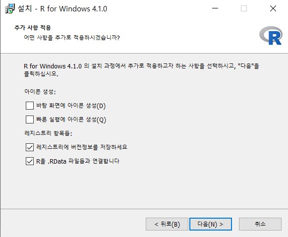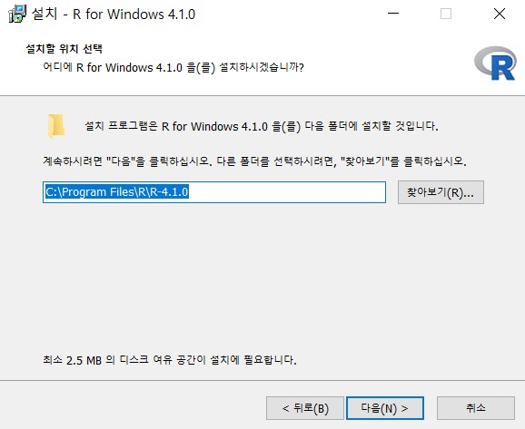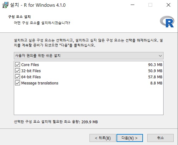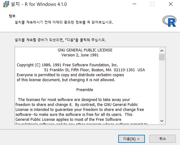 다시 [그림 6]으로 가서, 다운로드 된 R프로그램 (R-4.1.0-win.exe)를 클릭하면 실행이 된다.