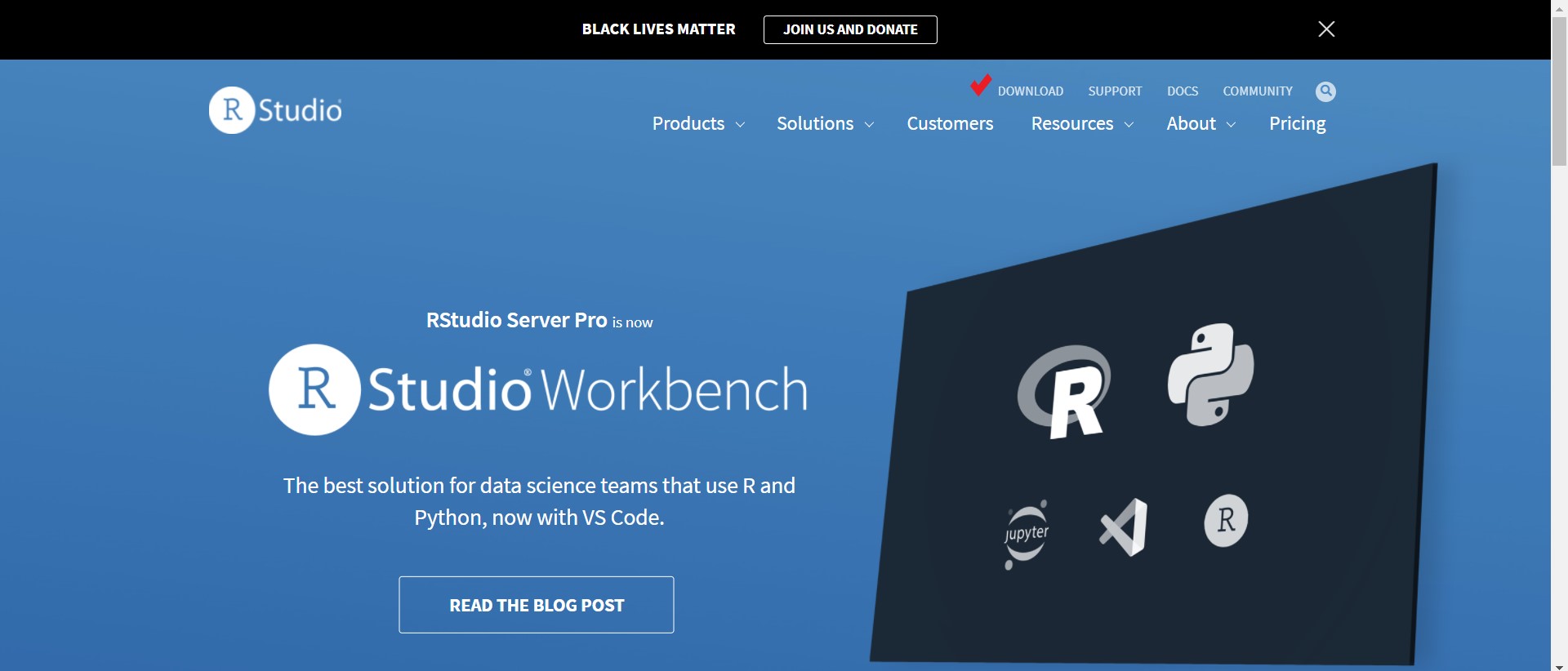 [그림 17] https://www.rstudio.com/에 들어와서 우측 상단에 있는 DOWNLOAD를 클릭하면 된다.