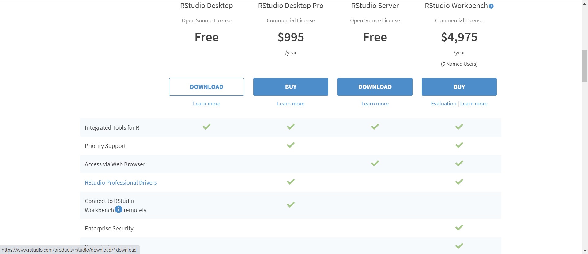 [그림 18] 화면 중간 부분에 보면 RStudio Desktop에서 DOWNLOAD를 클릭(그림 190하거나 아니면 화면 아래로 계속 내려가면