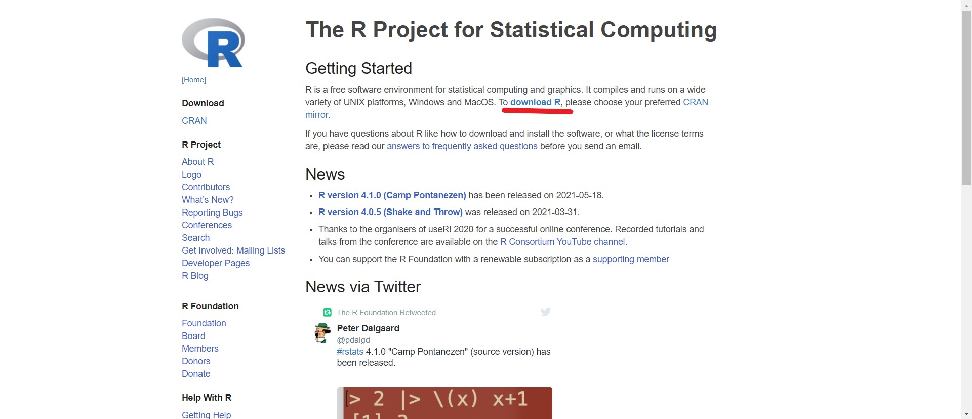 그 다음은 download R을 클릭한다.