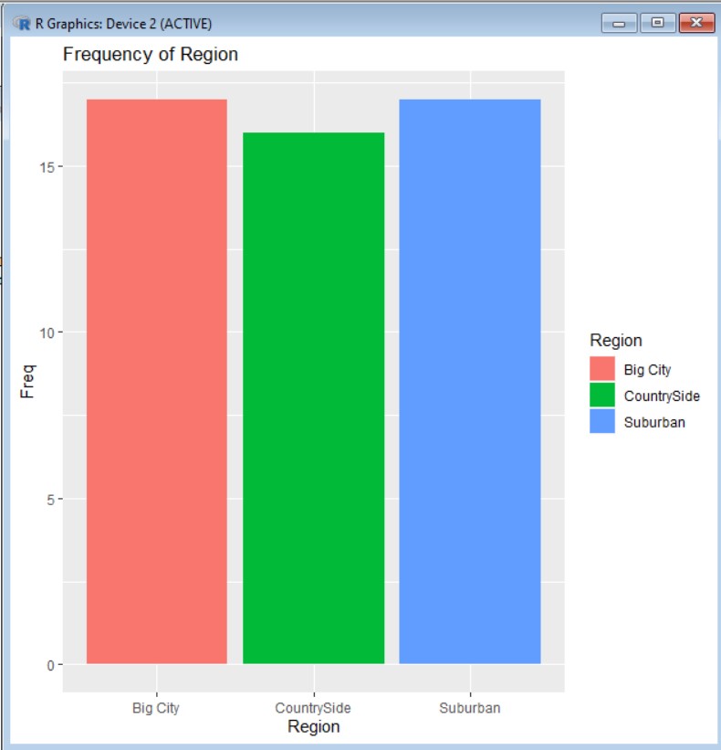 qplot(Region, data=em, fill=Region, main="Frequency of Region", xlab = "Region", ylab="Freq")