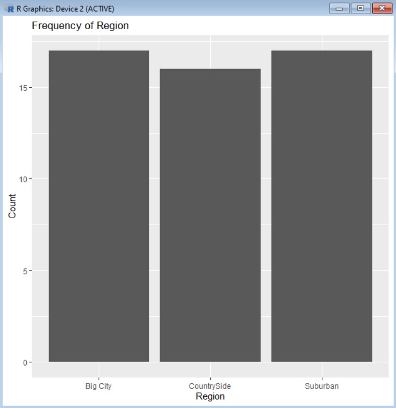 qplot(Region, data=em, main="Frequency of Region", ylab="Count", xlab="Region")