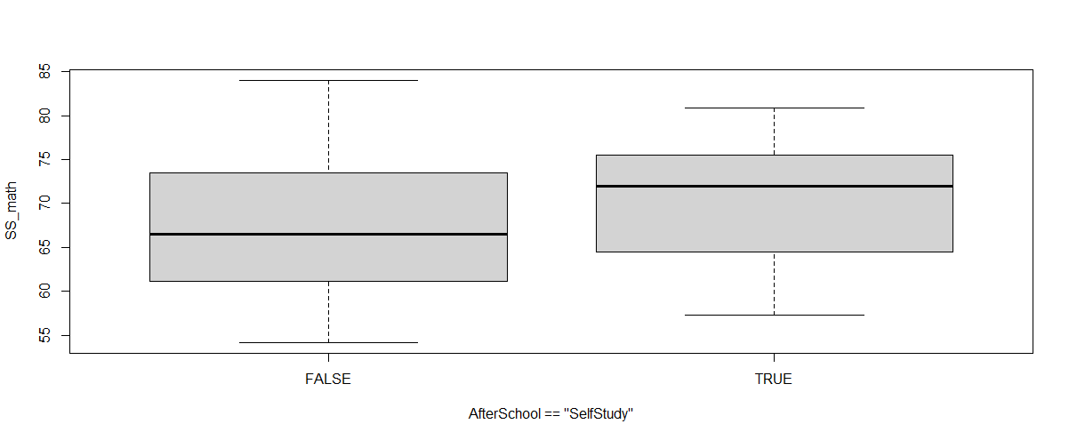 AfterSchool 변수에서 SelfStudy만 추출해서 상자 그래프를 그렸보았다. 기본형태는 == "SelfStudy" 만 추가해주면 된다.